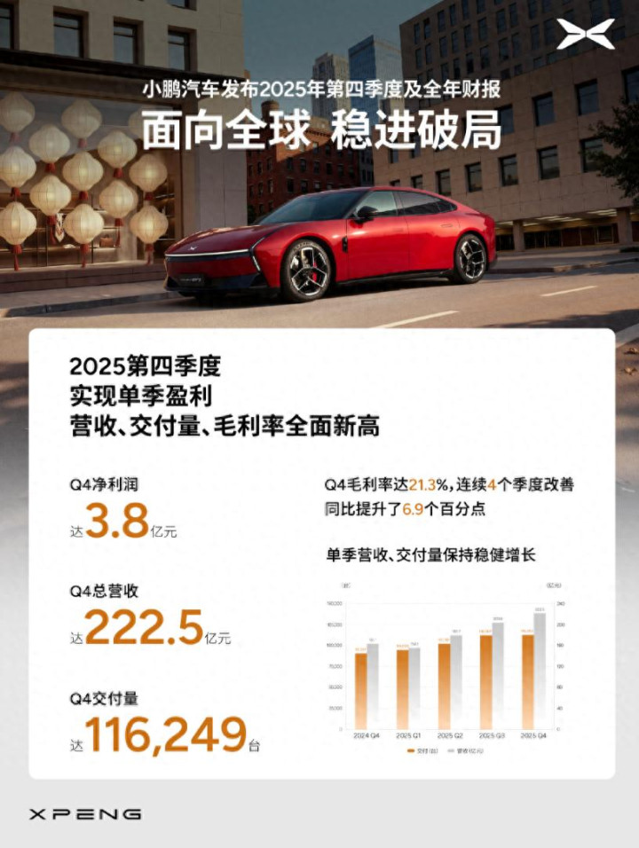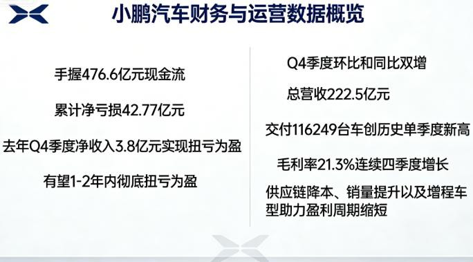 小鹏扭亏为盈毛利不竭高涨——Q4季度净收入3.8亿元。