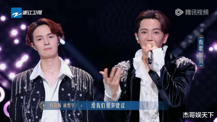 在此次的节目中,灼海豚互助的是张信哲,此次饰演的是一首大歌。
