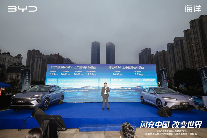 在全场嘉宾的遑急期待中,两款新车的价钱也在上市盛典中负责揭晓,其中,2026款海狮06EV官方指导价为15.99万元-17.99万元,并推出实力焕新礼、实力无忧礼、实力闪充礼、实力智联礼多重购车礼遇;海豹07EV官方指导价为16.99万元-18.99万元,用户还可享出众金融礼、出众焕新礼、出众智联礼、出众看护礼、出众闪充礼多项购车礼遇。