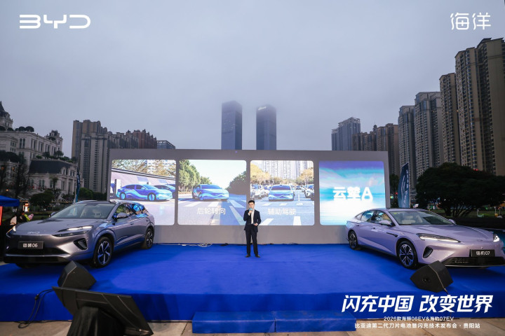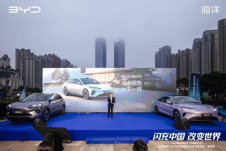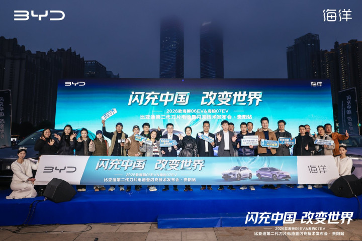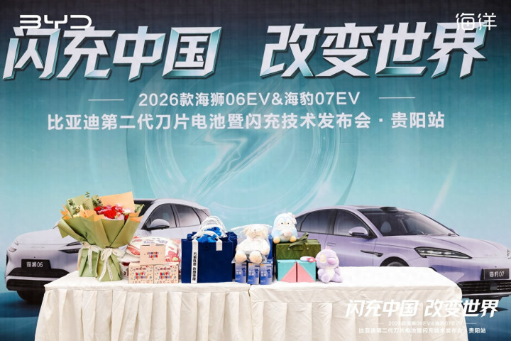 继2026年3月5日比亚迪全球发布第二代刀片电板及闪充时间后,标记着比亚迪在新能源领域又成立起一块新的跳动式里程碑,这也将透顶改变新能源汽车阛阓补能形式。3月19日以“闪充中国·改变天下”为主题的比亚迪第二代刀片电板&闪充时间发布暨海洋网2026款海狮06EV、海豹07EV新车上市盛典·贵阳站负责举行。来自贵州的中枢媒体、潜客及车主一又友们都聚一堂,共同见证比亚迪海洋网“678王炸组合”在贵阳的轰动亮相,体验“闪充期间”带来的极致补能后果,以及比亚迪以时间立异完了续航惊险的实力与决心。