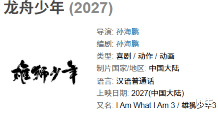 天然当今也有传说,这是孙海鹏导演的新型样,将辨别于雄狮系列。