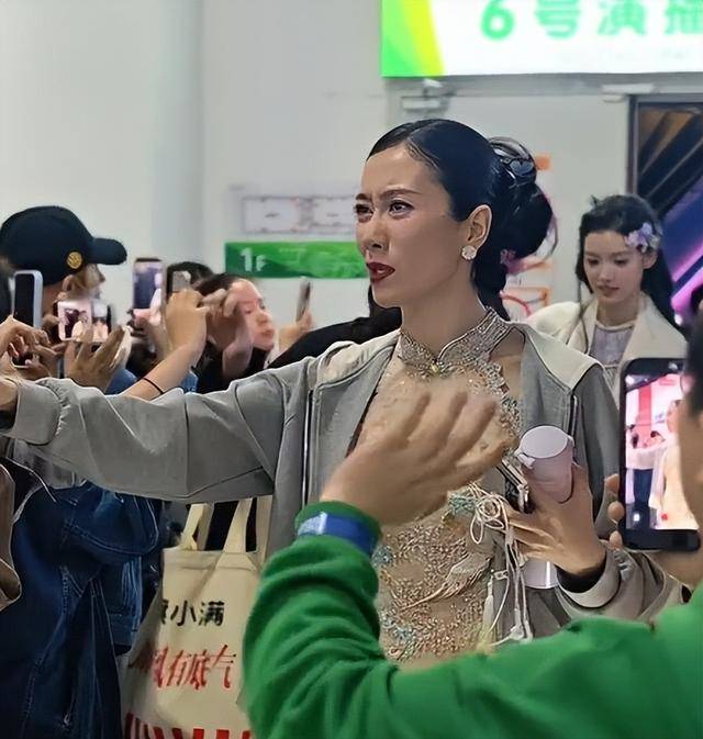 离场的时期,她明明还在哭,却强撑着笑脸,对着等候的粉丝一一比心、挥手,以致主动贴脸拥抱,那副“哭到发抖仍要贸易”的容貌,被现场不雅众吐槽“太刻意”。