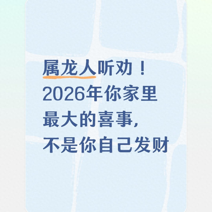 但今天要跟你说句确凿话:2026年你家里真确的大喜事,确实不是你我方发多大财。这份喜事,比银行卡里的数字更暖心,比职位的普及更自由,是若干财富齐换不来的圆满,亦然属龙东谈主这一年最该钦慕的福泽。