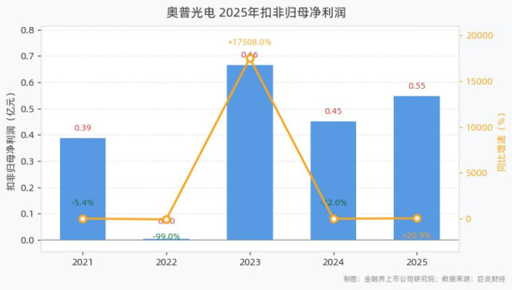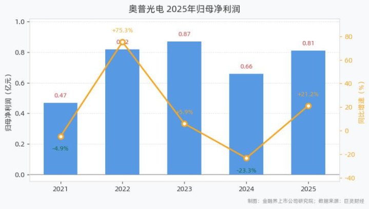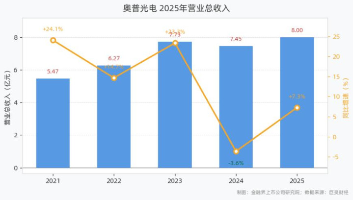 开云体育app 奥普光电2025年营收8.00亿元, 同比增长7.27%;归母净利润0.81亿元, 同比增长21.24%