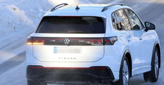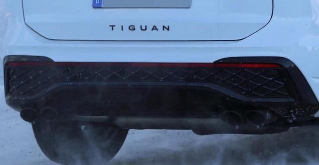 从车辆尾端来看,测试版块因为莫得像国内那样进行轴距拉伸,加上它仍是短后悬打算,途不雅R的侧后比例、D柱结构似乎齐要更合营一些。更伏击的是,在带有大面积熏黑的宽幅纠合尾灯之下,“TIGUAN”英文美艳强调了车辆的脉络感;而再往下,带蜂窝中网讳饰的后默契保障杠中,还带有双边共四出玄色涂装排气管,搭配前边提到的制动卡钳,车辆的高性能身份仍是得到说明。