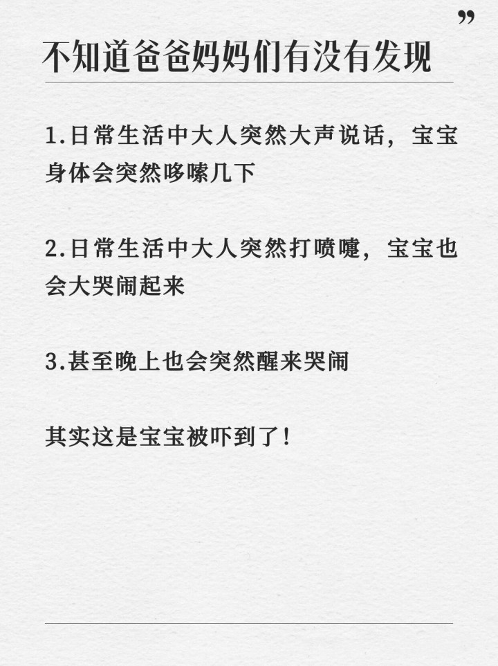 这些不是孩子“震惊”,而是她还莫得材干领悟这个天下的陡然变化。对婴儿来说,出乎意象的声息、当作,齐是无法瞻望的“危急信号”。