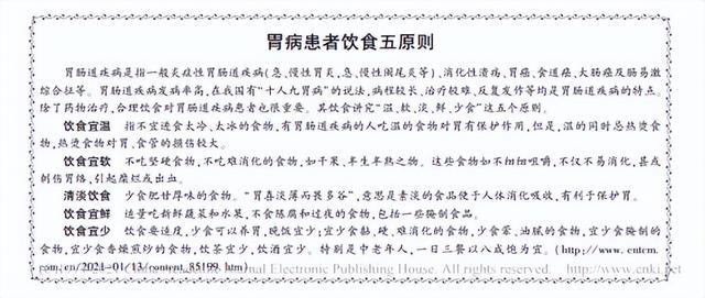 [1]胃病患者饮食五原则[J].湖南中医杂志,2021