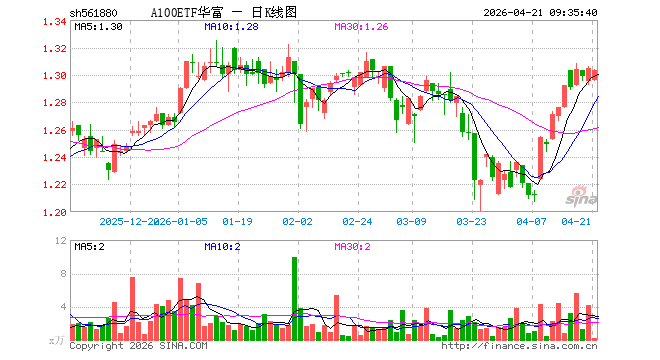4月21日,A100ETF华富(561880)开盘跌0.69%,报1.296元。A100ETF华富(561880)重仓股方面,宁德时期开盘涨0.58%,贵州茅台涨0.01%,中国祥瑞涨0.00%,中际旭创跌0.03%,紫金矿业涨0.46%,招商银行涨0.10%,开云体育好意思的集团涨0.21%,长江电力涨0.07%,寒武纪跌1.25%,立讯精密跌1.32%。