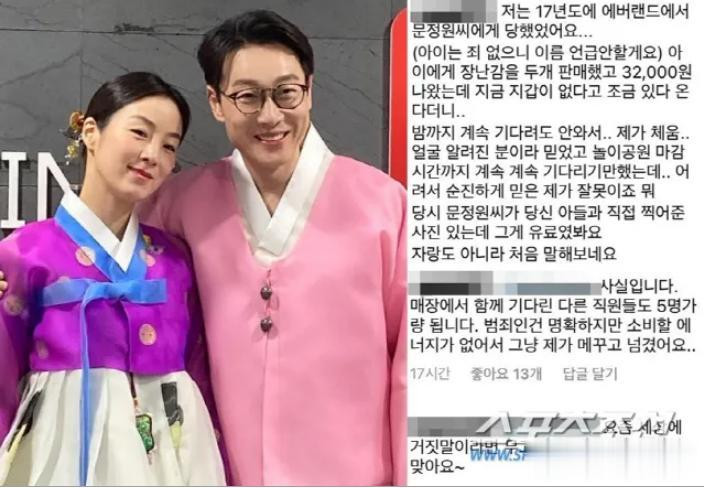 发帖东说念主称,我方17年在爱宝乐土使命时书言书俊一家来爱宝玩耍,文正媛从他哪里买了两个玩物合计32000韩元。
