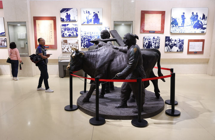 2025年10月8日,旅客在河北平山县西柏坡记挂馆参不雅。新华社发(梁子栋摄)