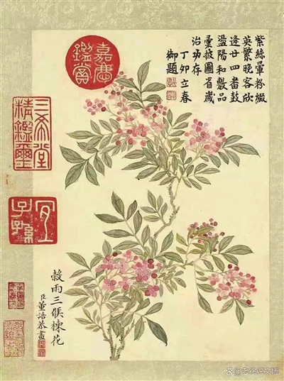 和荼蘼雷同,楝花也收拢历代诗东谈主的眼球。“小雨清风落楝花,细红如雪点平沙。槿篱竹屋江村跃,时见宜城卖酒家。”(宋·王安石)“细雨茸茸湿楝花,南风树树熟枇杷。”(明·杨基)“紫雪冥蒙楝花老,蛙鸣厅事多青草。”(清·曹寅)