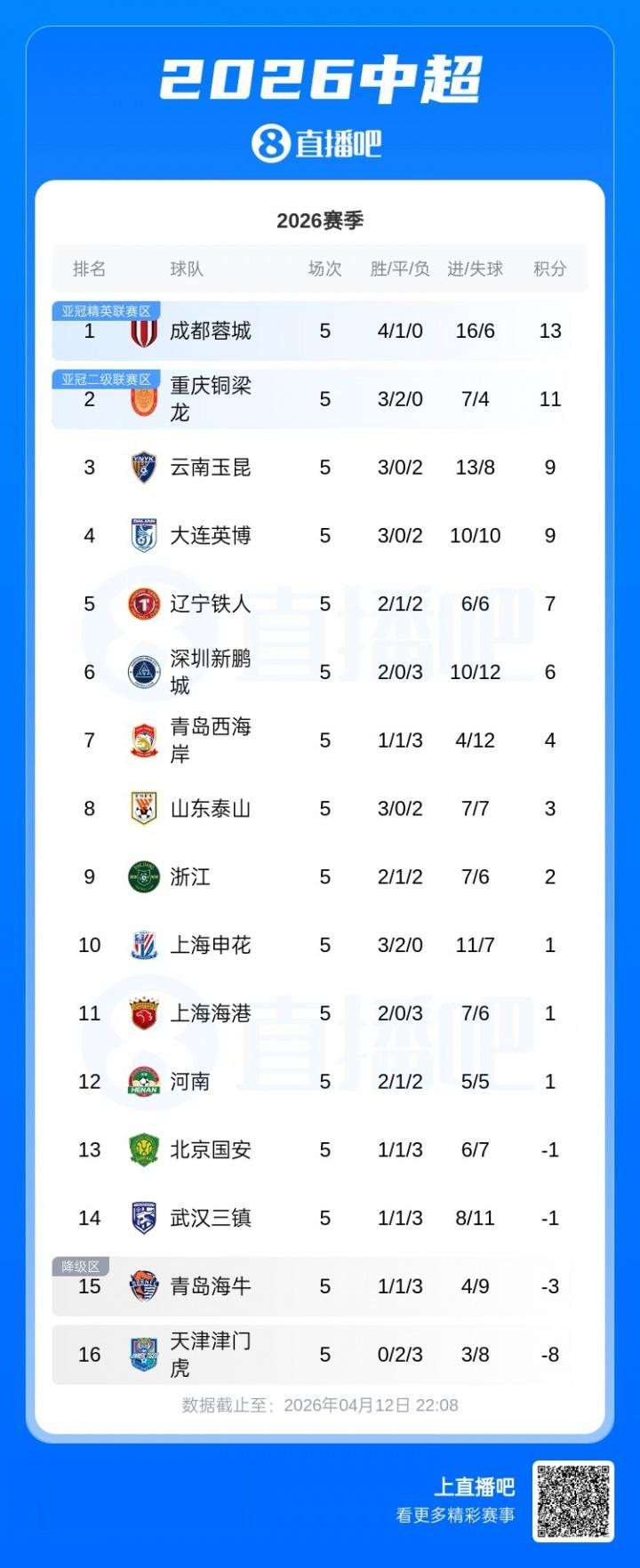 直播吧04月12日讯中超第5轮照旧一齐松手,开云官方体育app下载本轮西南F3三队齐取胜,开云app成齐、重庆、云南三队不时排在中超积分榜前三位。